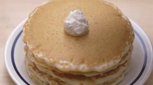 Syrup being poured over a stack of fluffy Ihop pancakes topped with whipped cream on a white plate.