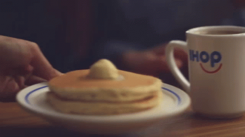 A stack of fluffy IHOP pancakes topped with butter, served alongside a cup of coffee for a classic breakfast.