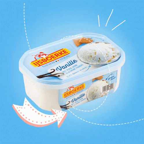 Ijsboerke ice cream container showcasing its delicious vanilla, chocolate, and stracciatella flavors.