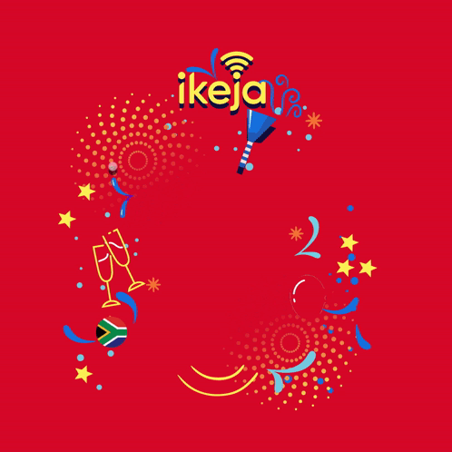 Ikeja and Ikejawifi wish you a Happy New Year 2024 with festive animations and the South African flag.