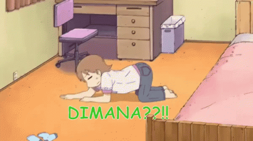 Yuuko Aioi frantically searches for something on the floor, getting increasingly frustrated when she can't find it.