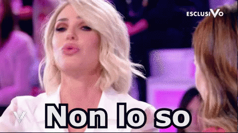 Ilary Blasi expresses uncertainty, saying 'Non lo so' (I don't know) with a shrug.