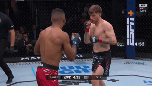 two men are fighting in a ufc ring with the espn logo on the corner