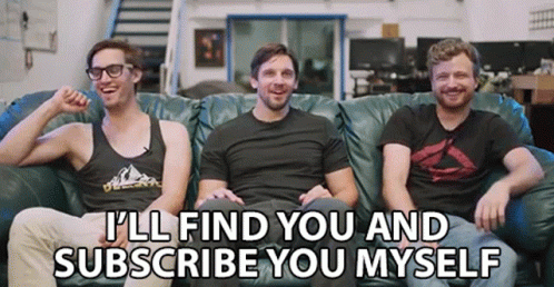 A humorous clip from Corridor Crew where one member jokingly threatens, 'I'll find you and subscribe you myself'.