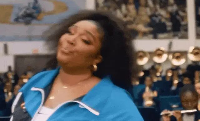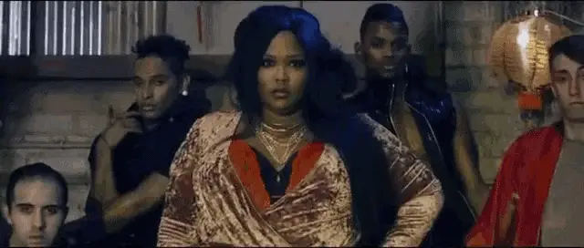 Lizzo, wearing a vibrant colorful shirt, says 'I'll See You Soon' in a clip from Prime Video.