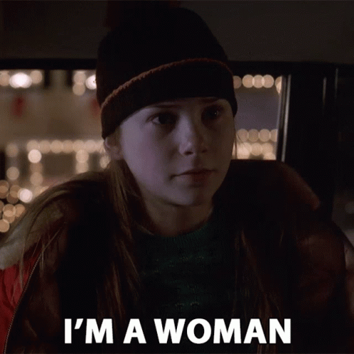 Olivia Morgan Scheck in a hat, from "Riding In Cars With Boys", declares "I'm a woman".