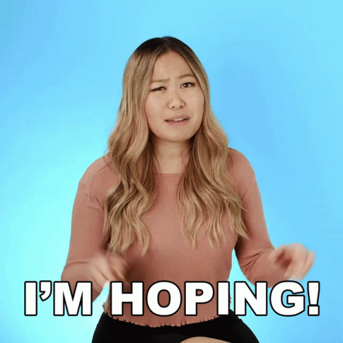 Ellen Chang expresses optimism, saying 'I'm hoping!' while gesturing against a blue background.