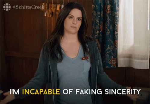 Stevie Budd from Schitt's Creek declares she's incapable of faking sincerity, expressing her honest nature.