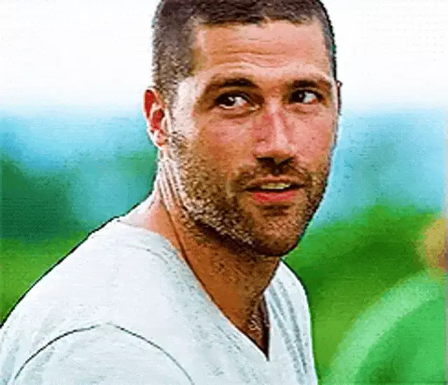 Matthew, Abigail, and Joshua from The Chosen sit on a rooftop, with Matthew eating grapes, as text encourages reading comments and downloading the app.