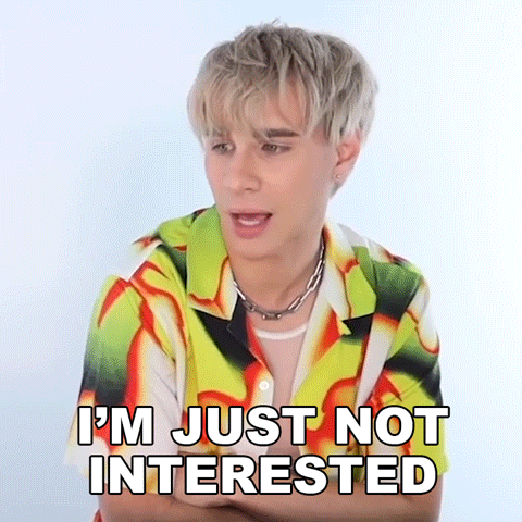 Brad Mondo, with blonde hair and a colorful shirt, states 'I'm just not interested'.