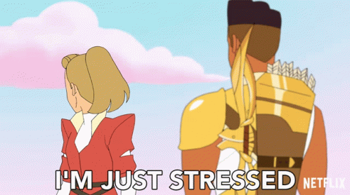 Adora from She-Ra: Princess of Power, looking stressed and overwhelmed, states 'I'm just stressed'.