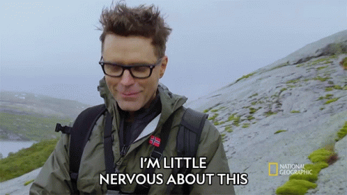 Bobby Bones expresses his nervousness while outdoors, wearing glasses and a green jacket.