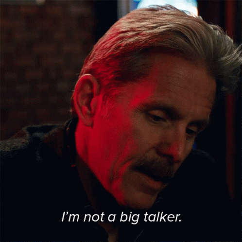 Gary Cole as Kurt McVeigh, a man with a mustache, stating 'I'm not a big talker' with a serious expression.