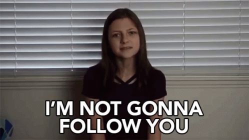 Bethany Grieve declares 'I'm not gonna follow you' with a stubborn expression, speaking directly to the camera.