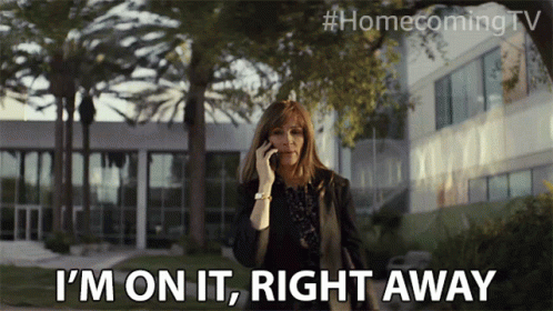 Julia Roberts as Heidi Bergman on Homecoming, walking and talking on the phone, saying 'I'm On It, Right Away'.