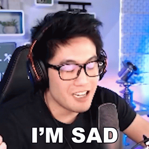 Ryan Higa, wearing headphones and glasses, expresses sadness, saying 'I'm Sad' with a melancholic expression.