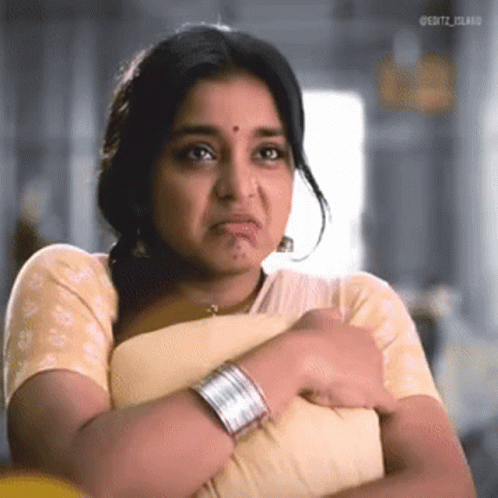 Sumbul Touqeer as Imlie makes a hilarious, scrunched-up funny face, holding a pillow with crossed arms.