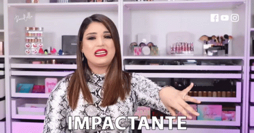 Roccibella reacts with an impactful gesture in front of her makeup collection, with 'IMPACTANTE' on screen.