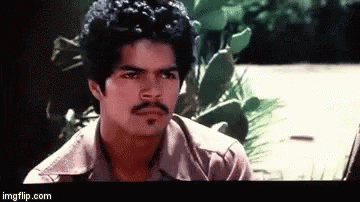 Esai Morales, as Bob, in a scene from La Bamba, looking intently at the camera during 'In Art Lessons'.