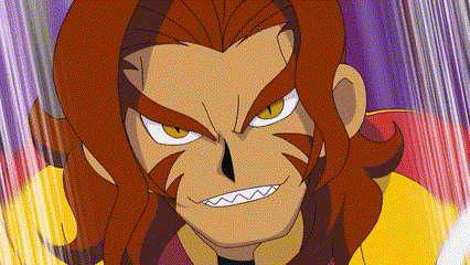 a close up of a cartoon character with long red hair