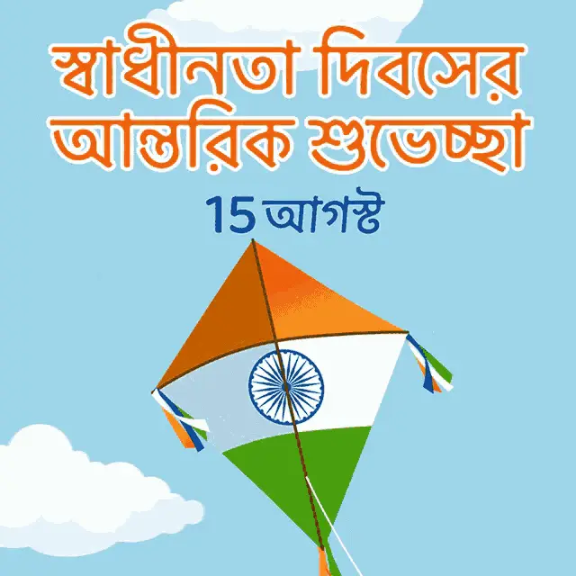 Animated greeting for Happy Independence Day 2023, featuring Indian flag colors and the Ashoka Chakra.