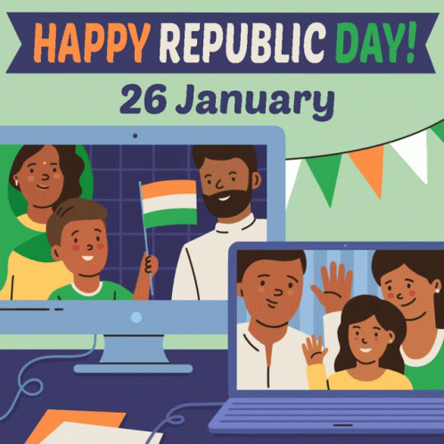 Celebrate India's Republic Day on January 26th with this vibrant graphic featuring families on video calls.