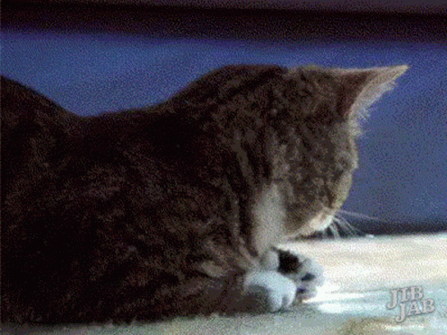 Ines Gatinha's cat, a tabby with white paws, gets startled by something off-screen, showing a surprised expression.