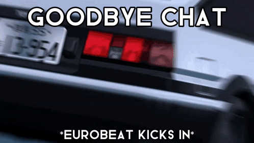 Takumi's AE86 from Initial D drifts with 'GOODBYE CHAT' and '*EUROBEAT KICKS IN*' text overlay.