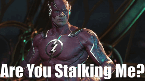 The Flash, also known as Barry Allen, from Injustice 2, asks the iconic question: 'Are You Stalking Me?'