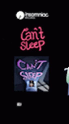 Animated logo for 'Can't Sleep' by Insomniac, featuring changing text colors and a prominent hashtag.