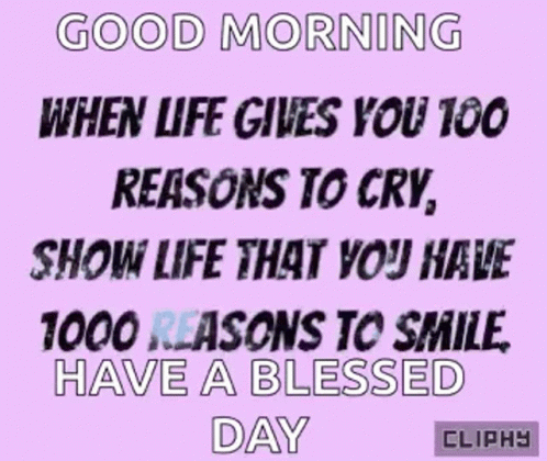 An inspirational message: "When life gives you 100 reasons to cry, show life that you have 1000 reasons to smile. Have a blessed day."