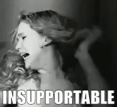 A black and white image of a distressed woman with the word 'INSUPPORTABLE' displayed, conveying a feeling of being overwhelmed.