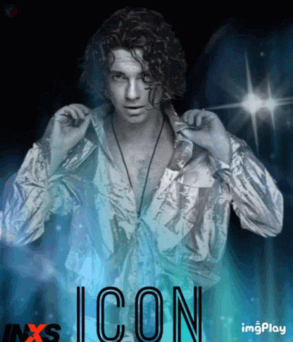 a black and white photo of a man with the word icon on the bottom