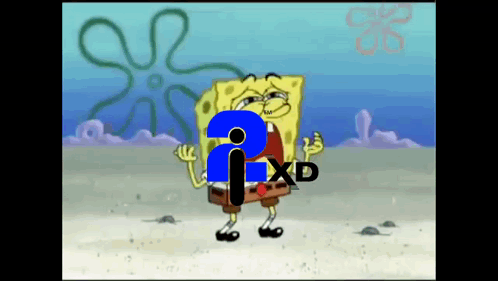 a cartoon of spongebob squarepants standing on a beach with a logo for xd .