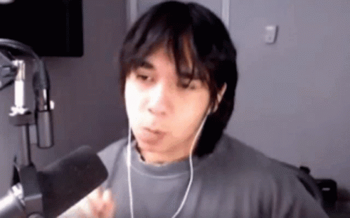 Isaacwhy talks into a microphone, wearing earbuds, likely during a Groupchat Podcast session.