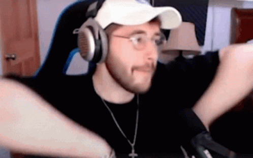 Isaacwhy and Softwilly from Groupchat Podcast, wearing headphones and a cap, in a casual setting.