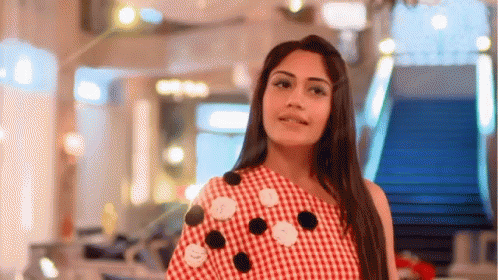 Anika from Ishqbaaaz smiles, wearing a stylish red and white plaid top.