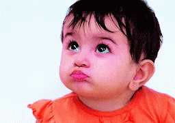 Ishqbaaaz Pari, a cute baby girl, looks up with an adorable pout while wearing an orange ruffled shirt.