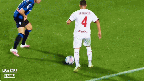 Ismael Bennacer scores a goal during a soccer game, featuring a banner that reads 'Amici a 4 zampe'.