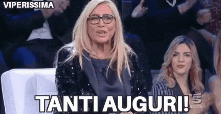 A woman from Isola Dei Famosi Viperissima segment expresses 'Many Wishes!' and 'I Love You!' with emotion.