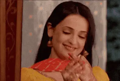 Barun Sobti as Arnav Singh Raizada applies haldi to Sanaya Irani as Khushi Kumari Gupta during a traditional ceremony from Iss Pyaar Ko Kya Naam Doon.