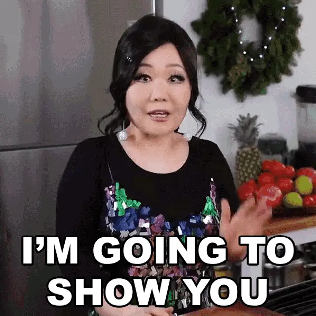 Emily Kim, in her kitchen, reacts with delight to a delicious aroma, exclaiming 'It Smells So Good!'