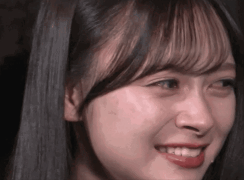 a close up of a woman 's face with a smile