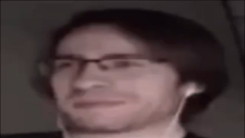 Man with glasses and earbuds reacts with a 'pog' expression, showing surprise or excitement.