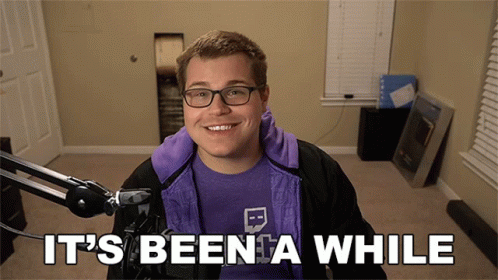 Daniel Smith (Cavemanfilms) says 'It's been a while' while sitting in front of a microphone.