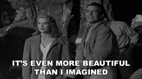 Cynthia Patrick in 'The Mole People' expressing awe with the line 'It's even more beautiful than I imagined'.