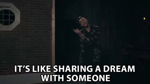Josh Taylor stands in front of a brick wall, with the caption "IT'S LIKE SHARING A DREAM WITH SOMEONE" displayed.