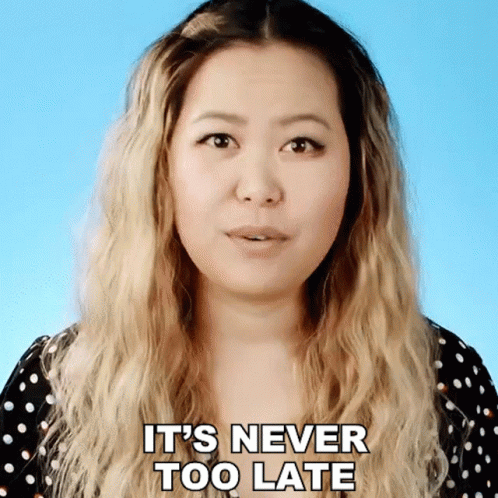 Ellen Chang delivers an inspiring message: 'It's Never Too Late', wearing a black and white polka dot dress.