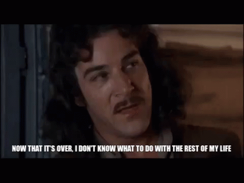 Inigo Montoya, played by Mandy Patinkin, reflects on life with the quote: 'Now that it's over, I don't know what to do with the rest of my life.'