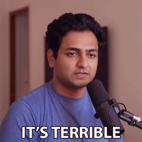 Kenny Sebastian expresses his strong opinion, stating 'It's terrible' into a microphone.